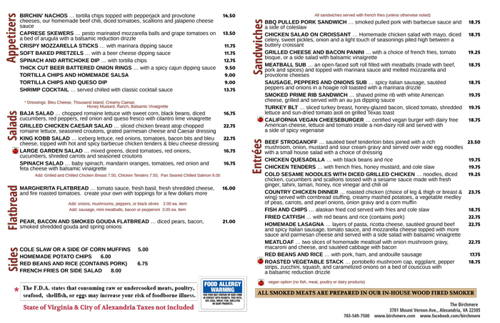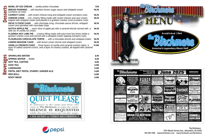 Birchmere Menu